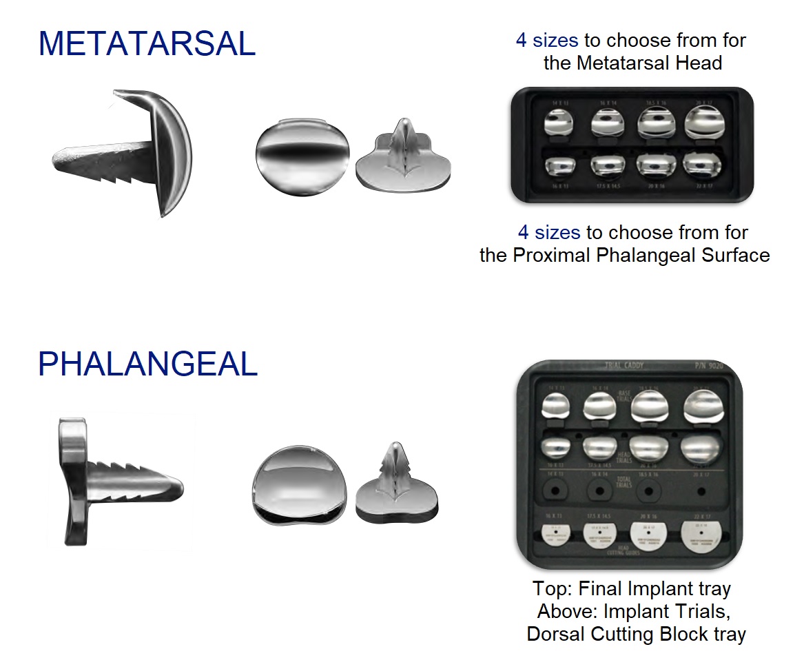 Indications: implant is designed to replace either side or the total of the first metatarsal phalangeal joint. The Hemi base with the poly is expected to be released 2024. For now, it will be a Hemi Head and a Hemi Base system. Replacement should occur at the surgeon’s discretion for arthritis of the first toe joint, except in instances of septic arthritis and disease states that greatly weaken the surrounding bone and tissues. Surgeon must be sure the patient is capable of undergoing the surgery and would benefit from the surgery. The implant is not to be reused and its use must follow FDA guidelines.